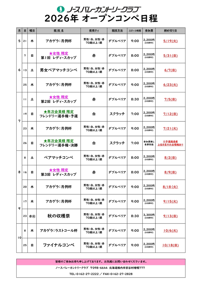今シーズンもみんなでワイワイ楽しみましょう♪ ★ご参加の場合は、1組(3~4B)でのお申し込みをお願いしております。 ご不明点などございましたらお気軽にお問い合わせくださいませ。